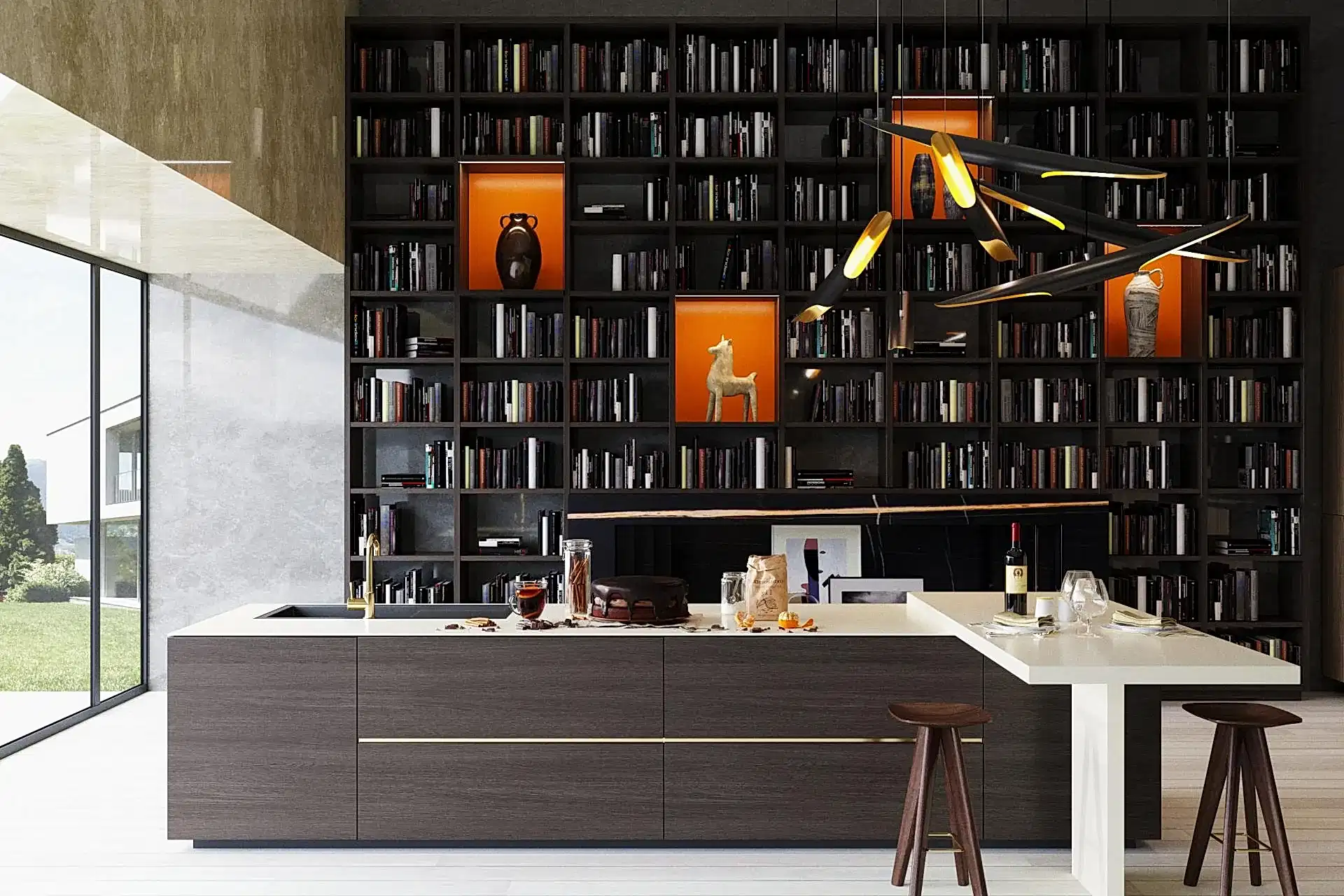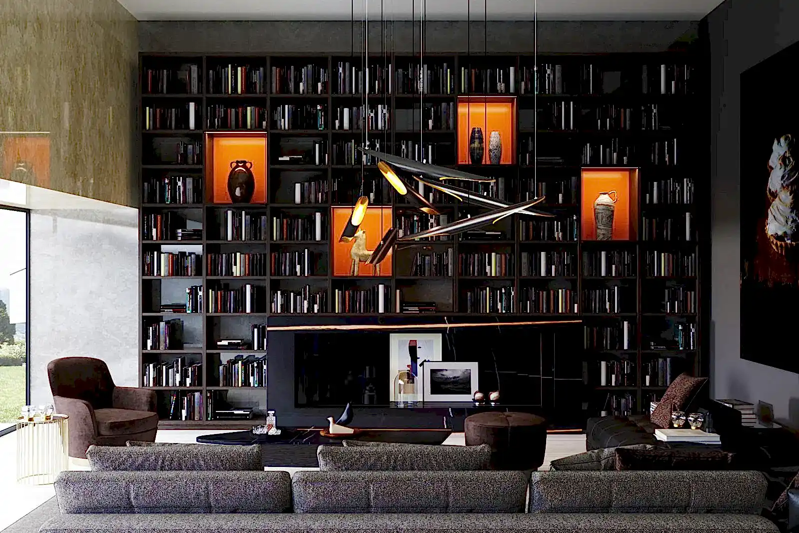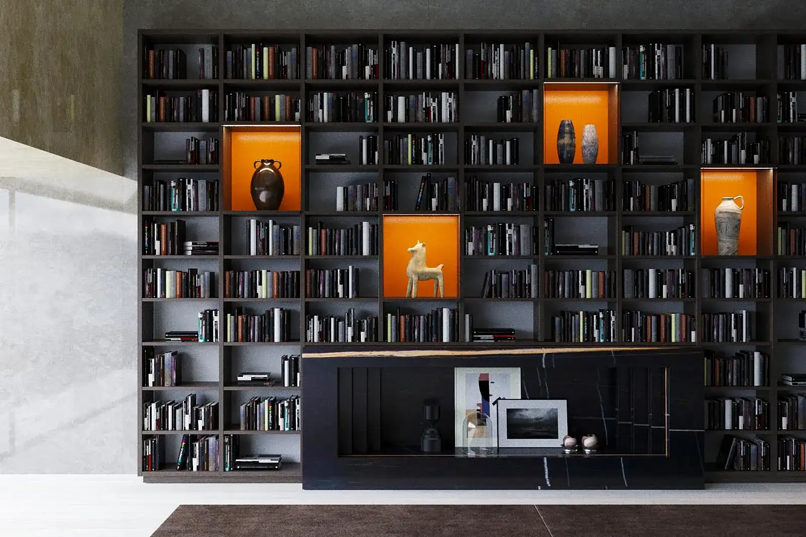Kütüphane tasarımının modern ve fonksiyonel yapısı, hem evde hem de ofiste kullanıma uygundur. LED aydınlatmalı bölmeler, kitaplığınıza ekstra şıklık ve zarafet katarken, kitaplarınız ve dekoratif objeleriniz için ideal bir ortam oluşturur.